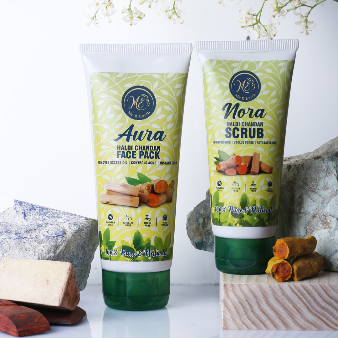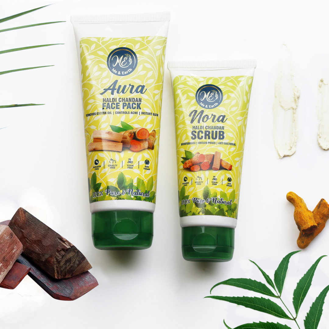 Haldi and Chandan combination is not new in skincare. People in India have used this miraculouscombination of Haldi and Chandan for decadesforskin care. Ayurveda shows that both Haldi (Turmeric) and Chandan (Sandalwood) have numerous health benefits and can work excellent for skin health. However, in this fast-paced life, no one has the time to make skincare Ubtan at home. Me and Earth brings the same skincare benefits with the all-new Traditional Haldi Chandan Combo.